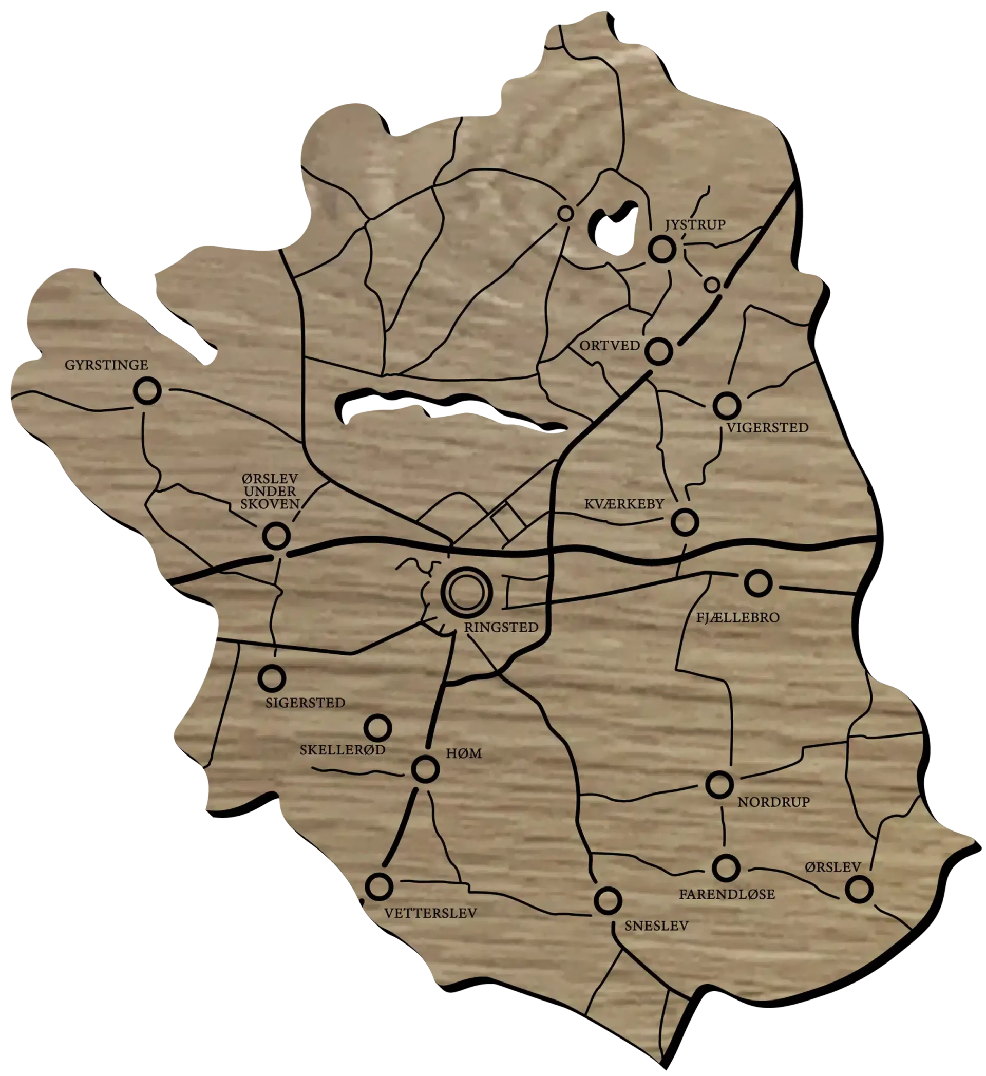 Luksuriøst kommunekort i magnetisk træ til væggen Vil du gerne vise frem, hvor du kommer fra? Eller er du meget glad for den kommune, du bor i? Med et magnetisk kommunekort i træ fra World In Wood får du mulighed for bringe gode minder fra barndommen frem eller stolt vise frem, hvor du bor nu. Som med vores landkort og verdenskort har vi også valgt at holde vores kommunekort så minimalistisk og skandinavisk i udtrykket som overhovedet muligt. Det giver dig ikke kun mulighed for at minde dig selv om gode tider, men giver dig også mulighed for at understrege elegancen eller det unikke ved dit hjem. Fordi kommunekortet er magnetisk, kan du markere steder, du har besøgt eller boet, med små magneter. De ødelægger ikke det flotte kort og dets detaljer. Med et magnetisk kommunekort får du altså et smukt kort til væggen, der holder i mange år. Vis hvor du er fra med et eksklusivt kommunekort ”Ude er godt, men hjemme er bedst”. Sådan er der mange af os, der har det, når det kommer til stykket. Uanset hvor rejselystne og eventyrlystne vi er. Med et eksklusivt kommunekort til væggen, kan du holde fast i dine rødder, vise andre hvor du tidligere har boet eller bare stolt vise det område frem, som du nu bor i. Det kan også være, der er særlige steder i kommunen, der bringer rigtig gode minder frem, og som du meget gerne vil fremhæve hjemme i stuen. Det er alt sammen muligt, da vores kommunekort er magnetiske. Du kan derfor bruge de inkluderede magneter til at udpege særlige steder eller vise, hvor du hører hjemme. Kommunekortet fungerer også rigtig godt som et eksklusivt alternativ til en byplakat eller kommuneplakat, som i disse år også er særligt populære. For kommunekortet fortæller ikke bare noget om dig – det fremhæver også din unikke indretning eller frembringer en særlig stemning i rummet. Skab dit eget og personlige kommunekort Hos World In Wood går vi meget højt op i detaljerne. Foruden at hele overfladen er magnetisk, så passer vores forskellige kommunekort også sammen. Fuldstændigt som et puslespil. Altså kan du skabe dit eget personlige kort, hvis du har lyst til dette og gerne vil samle særlige minder eller steder på ét kort. Derudover har vi også graveret de største veje i kommunerne samt byer med mere end 1000 indbyggere. Vælger du dog et kommunekort i medium størrelse, er byer med 200-1000 indbyggere også graveret. For kommunekort i størrelsen large er forstæder også graveret. Der er derfor mange muligheder for at vælge en favorit blandt vores kommunekort. Få kommunekortet på væggen på et øjeblik Vores kommunekort er flotte at se på. Men de er også nemme at få op på væggen, da de sættes op ved hjælp af stærke magneter og/eller skumtape alt efter hvor store de er. Dette gør det mulig at hænge kortet helt perfekt. Du behøver derfor ikke være god til søm og hammer, da vi har udtænkt en meget nemmere løsning for dig. Vi anbefaler samtidig, at du hænger dit kommunekort op et sted med masser af luft omkring, da det får det til at komme mere til sin ret. Det er nemlig ikke blot et kort – men også et smukt stykke brugskunst, der fortjener mest mulig opmærksomhed. Et kommunekort i meget høj og eksklusiv kvalitet Kun det bedste er godt nok for os og vores kunder. Det er i hvert fald udgangspunktet for designet og udviklingen af vores eksklusive kommunekort. Vi benytter os derfor udelukkende af materialer i meget høj kvalitet, som vi kvalitetstjekker. Det samme er gældende for det endelige produkt, da det er lavet i hånden på vores eget værksted. Når du derfor bestiller et kommunekort hos os, kan du være sikker på, at du har et hængende derhjemme, der er ganske unikt. For ikke to kort ligner hinanden. Netop dette er også med til at give vores kort et eksklusivt touch. Bestiller du et i dag, går vi straks i gang med at udskære og forme det. Der kan være leveringstid op til 14 dage, da vi som sagt selv producerer vores produkter. Da vi samtidig ønsker en høj kvalitet, kan det give op til 14 dages leveringstid, dog oftest meget hurtigere. Vi bestræber os dog på at gøre det hurtigere, så du ikke skal vente for længe. Har du spørgsmål til vores kommunekort, proces eller måske levering, er du mere end velkommen til at kontakte os.